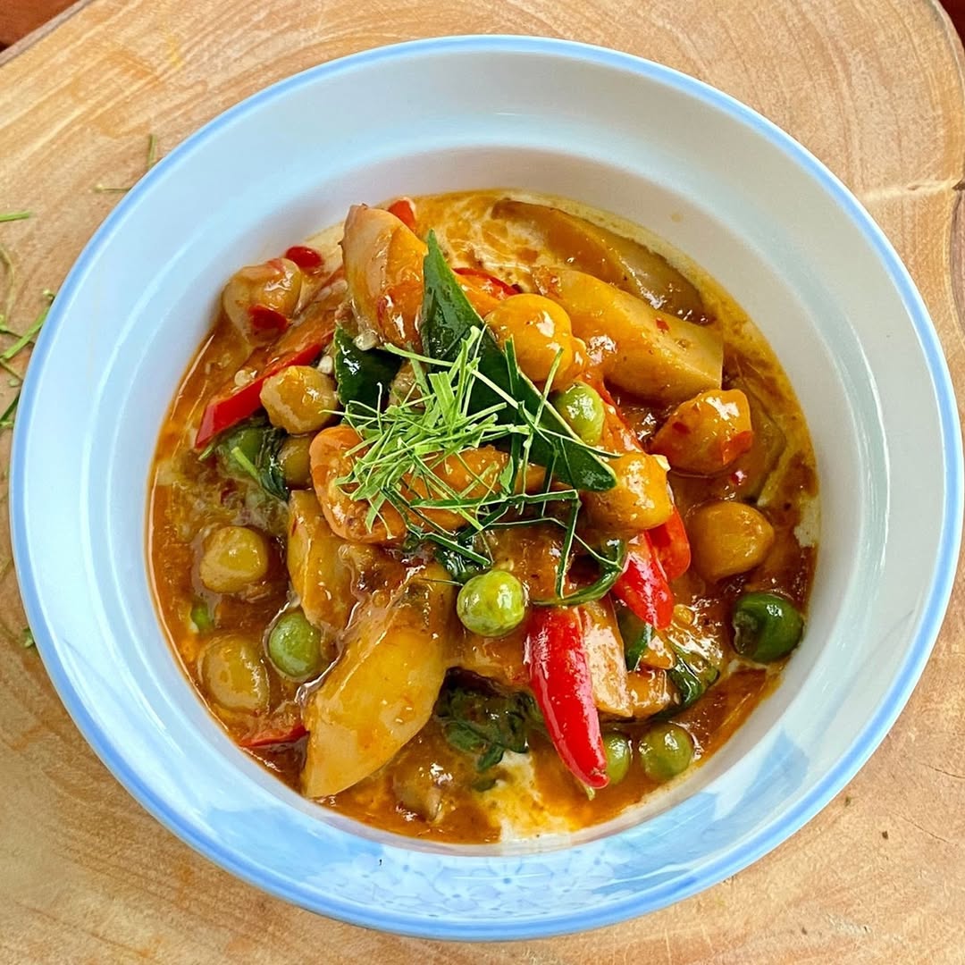 Thai curry with vegetables, served fresh and comforting. (Source: Instagram — @arcadiafinefoods)